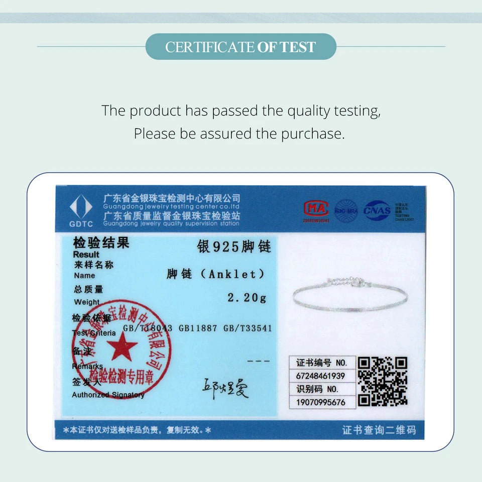 Certificate Number: foot jewelry